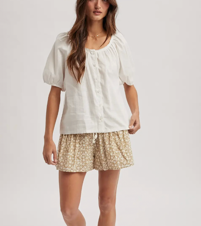 Breezy and comfortable, these floral print shorts feature an elastic waistband with a rope drawstring, side slit pockets, and a relaxed fit. Perfect for warm-weather outings and easy, everyday wear.